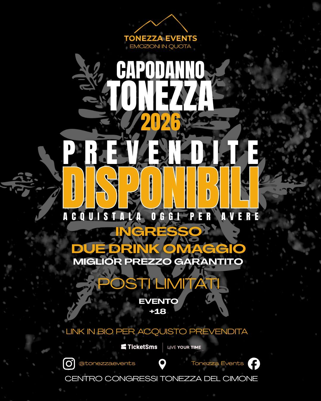 Acquista qui la tua prevendita: https://www.ticketsms.it/event/Capodanno-Tonezza-2026-Centro-Congressi-31-12-2025
